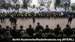 Раніше про можливі обмеження авторуху в центрі Києва через акції протесту попереджала поліція, яка посилено охороняє урядовий квартал.