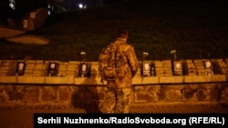 Ввечері на майдані Незалежності зібралася невелика кількість людей, щоб згадати, як розпочиналася Революція Гідності, серед них був співак і громадський діяч Святослав Вакарчук, один із голосів обох Майданів.