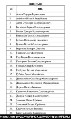Служба безпеки України опублікувала список звільнених у рамках обміну на Донбасі громадян України. У ньому – 12 військових і 64 цивільних, всього 76 громадян.