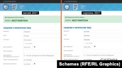 При цьому ще станом на лютий 2021 року цей же ресурс вказував, що ці ж документи належать Наталії Миколаївні Лавренюк, 26.02.1975 року народження.