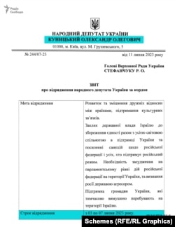 Звіт за цю поїздку нардеп подав на ім’я спікера Руслана Стефанчука 11 липня. В цей час, як з’ясували «Схеми», він все ще перебував за кордоном. Журналісти отримали звіт нардепа з ВР у відповідь на запит.