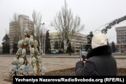 Поки кореспондент Радіо Свобода перебував на площі Фестивальній, перехожі не чіпали символічну ялинку. Більшість з них зупинялися, аби пофотографувати ялинку на власні мобільні телефони.