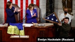 На завершення виступу Володимир Зеленський передав спікеру Палати представників Ненсі Пелосі (з якою мав зустріч перед виступом) український прапор з автографами який просили його передати захисники Бахмута. Зі свого боку, Зеленському подарували американський прапор, знятий з Капітолію.