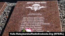 Рідні також розгорнули великий банер із фотографіями бійців, що летіли у збитому літаку. На імпровізованій «стіні пам’яті» вздовж алеї поряд портретами загиблих десантників вивісили «закривавлені» тільняшки і фотографії військових посадовців, які, на думку родичів, мають бути покарані за той політ.