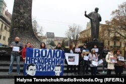 У Львові група людейбіля пам’ятника Тарасові Шевченку провела акцію і приєдналась до міжнародного руху на підтримку українських заручників у Росії і на Донбасі.