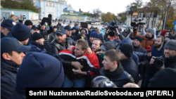 Як повідомляє кореспондент Радіо Свобода, штовханина між поліцією і противниками маршу виникла після того, як останні намагалися порвати плакати прибічників маршу. В одного з противників легалізації коноплі знайшли муляж гранати і декілька димових шашок.