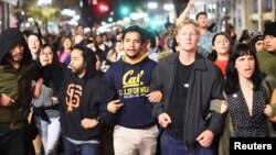 В американському Окленді, штат Каліфорнія, після перемоги республіканця Дональда Трампа на президентських виборах відбуваються акції протесту. За повідомленнями ЗМІ, люди вийшли на вулиці міста з гаслом «Не наш президент!».
