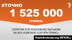 За даними державного реєстру, компанія «Сатурн-Транс» займається вантажними автомобільними перевезеннями. Наразі її співвласниками на паритетних засадах в реєстрі зазначені народний депутат Ігор Кононенко та його батько з однаковими внесками у статутний капітал розміром 1 мільйон 525 тисяч гривень.