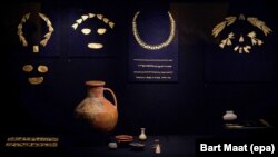 Колекцію «скіфського золота» вивезли з Криму на виставку в археологічний музей Алларда Пірсона в Амстердамі на початку лютого 2014 року, ще до того, як півострів незаконно анексувала Росія. Через анексію Росією Криму (яку Нідерланди не визнають) виникло запитання, кому повертати кримську колекцію.