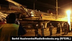 Нині триває оперативний демонтаж зовнішньої конструкції пішохідної частини Шулявського шляхопроводу, яка обвалилася.