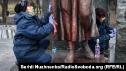 Активісти 18 березня відчистили в Бабиному Яру в Києві пам’ятник Олені Телізі, який раніше вандали облили фарбою. Про це повідомили учасники спонтанної толоки.