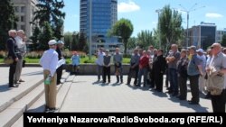 Біля Запорізької облдержадміністрації пенсіонери-колишні військові, працівники МВС та ДСНС вимагали провести перерахунок пенсій.