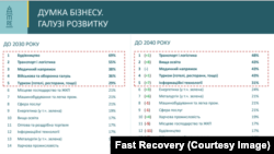 Зокрема будівництво маріупольські підприємці вважають найбільшою галуззю розвитку після деокупації міста до 2030 року. Натомість вже до 2040 року провідною галуззю може стати транспорт та логістика.