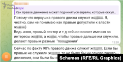 Як встановили «Схеми», у телеграмі він стежив і коментував дописи у групах неонацистських поглядів із промовистими назвами: «Правый взгляд», «Правый публицист», «Белое движение», «Белая масть», «White Powder» (Біла Пудра – ред.).