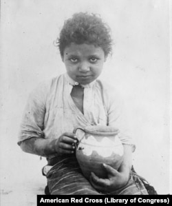 «Типова циганська дівчинка на Балканах. У цій частині світу цигани живуть у великих кількостях. Під час недавньої боротьби з інфекційними захворюваннями ці мандрівні родини створювали великі труднощі для лікарів (Червоного Хреста). Цю дівчинку сфотографували за продажем глечиків на вулиці».