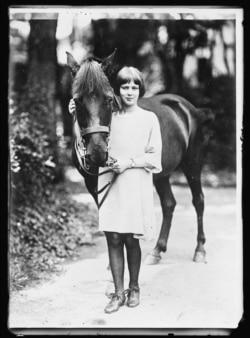 «Мала чорногорська білявка-безпритульниця, яку ми підібрали на дорозі. Дівчинка втратила батьків під час війни і жебрала, а жила зі ще 31 безпритульною дитиною в печері біля Подгориці. Її віддали в школу (Червоного Хреста) в Цетинє. Дрантя, яке на ній на цьому фото, замінили на теплий американський одяг. Тепер вона має регулярне харчування, живе в середовищі з дотриманням санітарії і вивчає шкільні ази (читання, письмо й арифметику)».