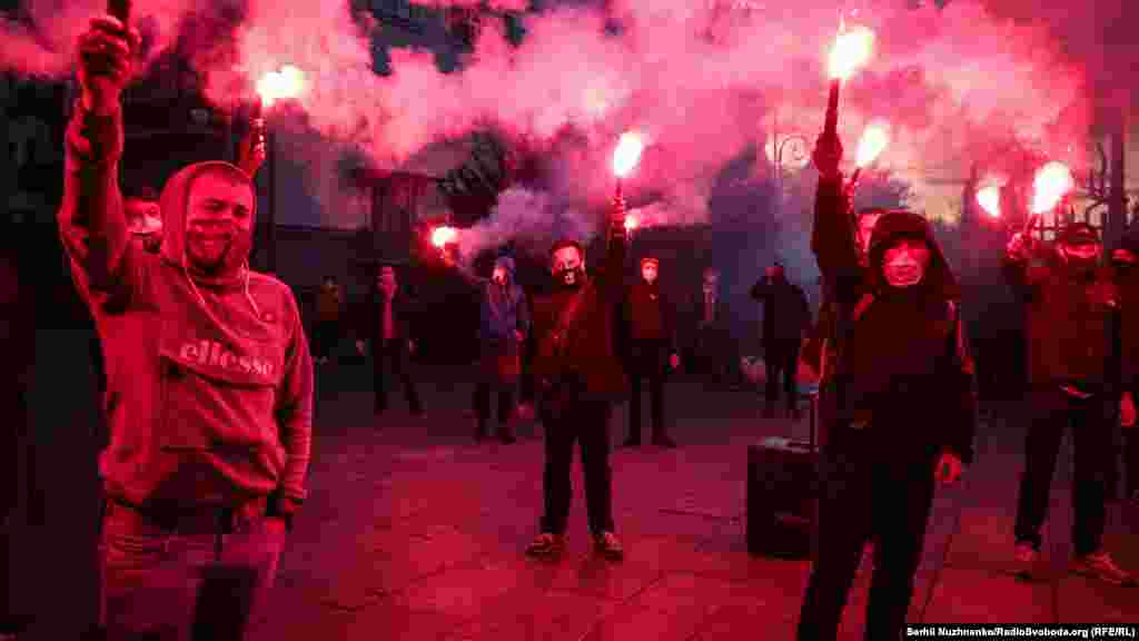 Декілька десятків людей, активістів ініціативи «Хто замовив Катю Гандзюк?» під Офісом президента України влаштували акцію протесту, учасники акції вимагали пояснень від Володимира Зеленського та звільнення генпрокурора Ірини Венедіктової через завершення досудового слідства у справі Катерини Гандзюк.