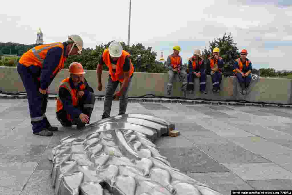 30 липня у Києві розпочали демонтаж радянського герба з монументу «Батьківщина-мати». Планується, що до Дня Незалежності України замість герба СРСР із зіркою, серпом і молотом на скульптурі вже буде український Тризуб. Про це повідомило Міністерство культури України. Таке рішення підтримали 85% українців, які раніше голосували у застосунку «Дія». Загалом в опитуванні взяли участь більш ніж 770 тисяч людей. Крім того, директор Національного музею Юрій Савчук заявив про плани зміни назви монументу на «Україна-мати». Він сподівається, що остаточне рішення про перейменування буде ухвалено також до Дня Незалежності України.