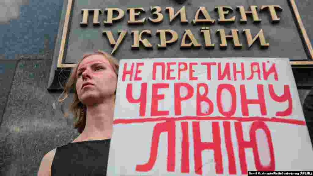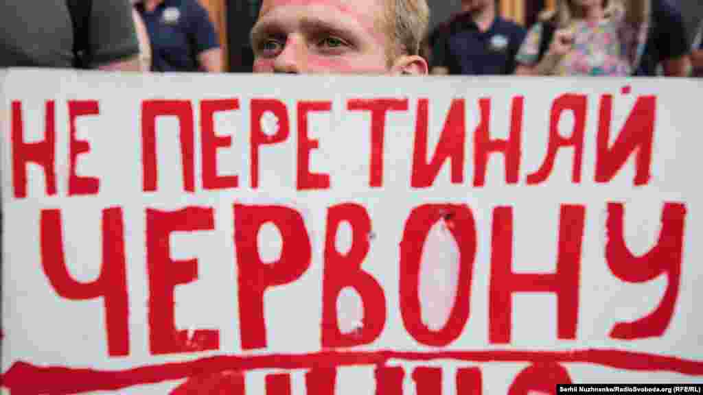 Біля Офісу президента України увечері 4 липня зібралося кілька сотень людей на акцію протесту «Не перетинай червону лінію!» Вони вимагали від влади – не переступати «червоні лінії». І визначили шість «червоних ліній»: це мова, євроінтеграція, неприпустимість відносин із Росією, відкат у декомунізації, армія і територіальний устрій.