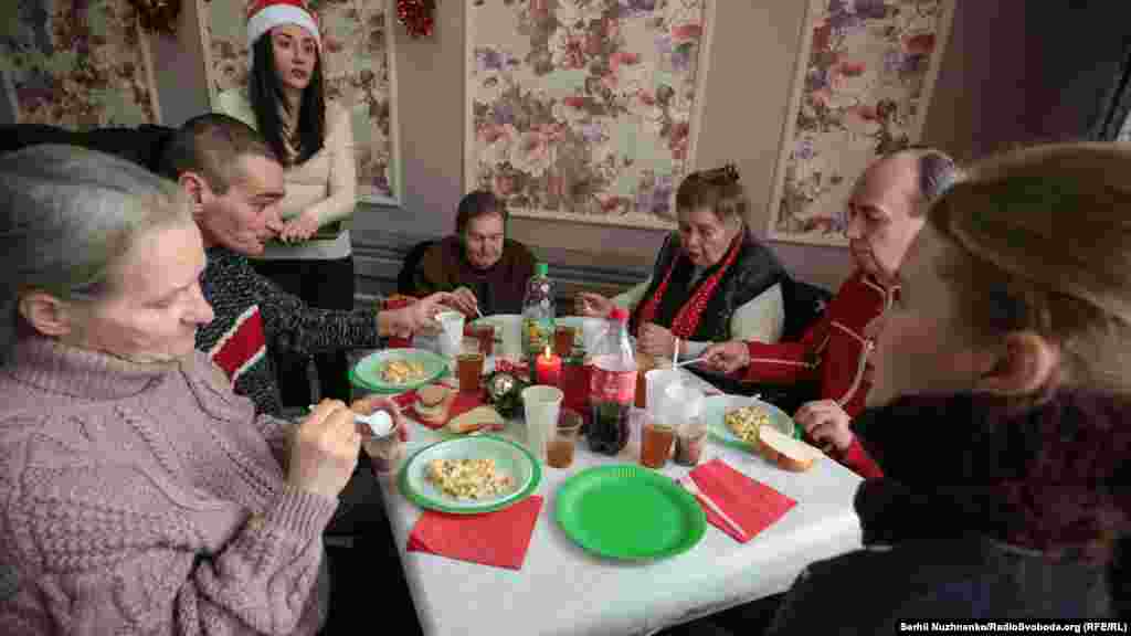 У декількох містах України 7 січня Спільнота святого Егідія провела різдвяні обіди для нужденних – літніх людей, які змушені жебракувати, бідних сімей, безпритульних. У Києві, Львові, Івано-Франківську, Харкові та Одесі близько 300 волонтерів накрили столи для понад тисячі осіб. Фотокореспондент Радіо Свобода побував на такому обіді, який організували у київському кафе «Трапезна» на Подолі