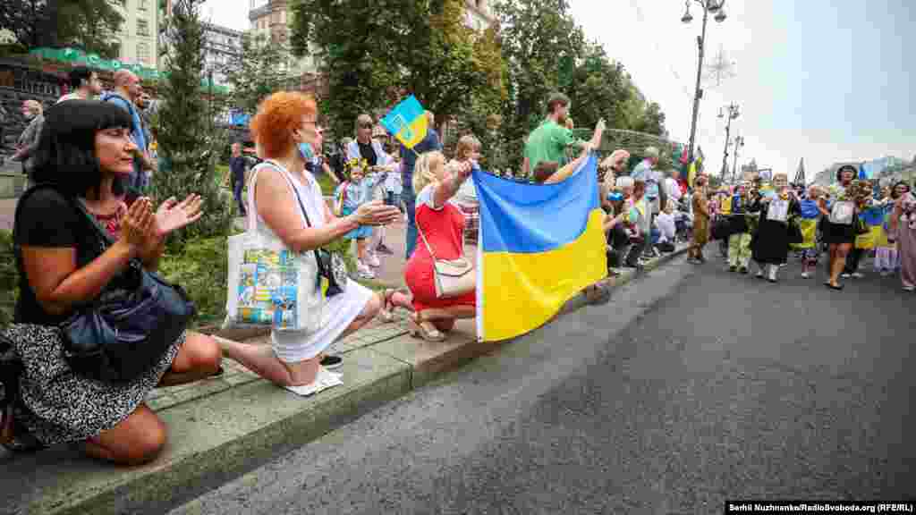 Тим часом у парку ім.Шевченка стартували дві багатотисячні акції – «Марш захисників України» та «Хода ветеранів». Вулицями Києва пройшли учасники війни на Донбасі, родичі тих, хто віддав життя за Україну, медики, волонтери та деякі політики.