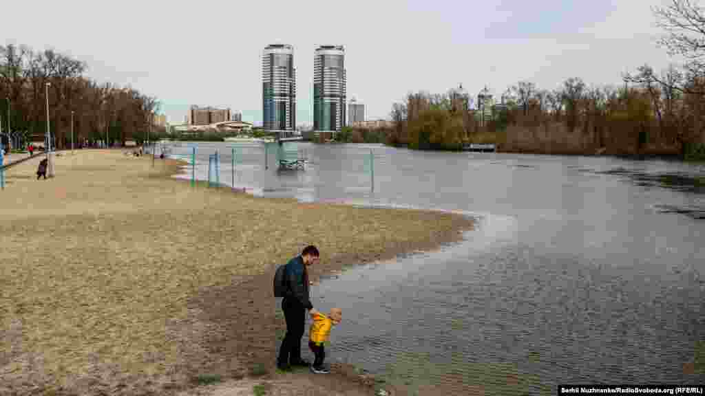 Рясні опади та підняття рівня води в Дніпрі спровокували підтоплення у прибережних районах Києва. Цьогоріч рівень води на 0,5-1 метр перевищує минулорічний, і станом на 17 квітня рівень води у Дніпрі оцінювався як близький до критичного. Як повідомляє КМДА, пік весняної повені очікується до кінця цього тижня, орієнтовно 22 квітня. У столичній адміністрації також пояснюють, що раніше рівень Дніпра у Києві завжди регулювався за рахунок роботи каскаду дніпровських ГЕС, але на сьогодні Каховська ГЕС не працює в повному технологічному режимі, тому інші греблі намагаються скорегувати цю ситуацію.