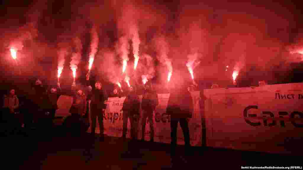 Присутні тримали в руках плакати з написом «Вибачте, так а хто замовив Гандзюк?»