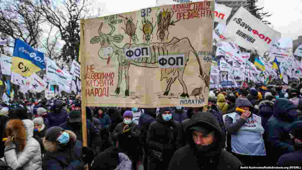 Протестувальники, зокрема, вимагали, щоб парламент ухвалив законопроєкти про спрощену систему оподаткування малого і середнього бізнесу, а також відклав обов’язкове використання касових апаратів для фізичних осіб-підприємців (ФОПів). Пізніше Верховна Рада відклала розгляд законопроєкту на рік, до 1 січня 2022 року.