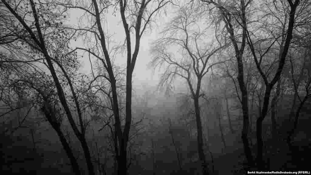 Володимирська гірка. Пам'ятник Володимиру Великому видніється скрізь густий туман