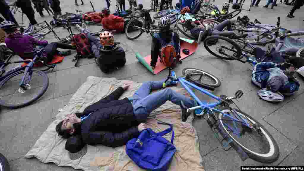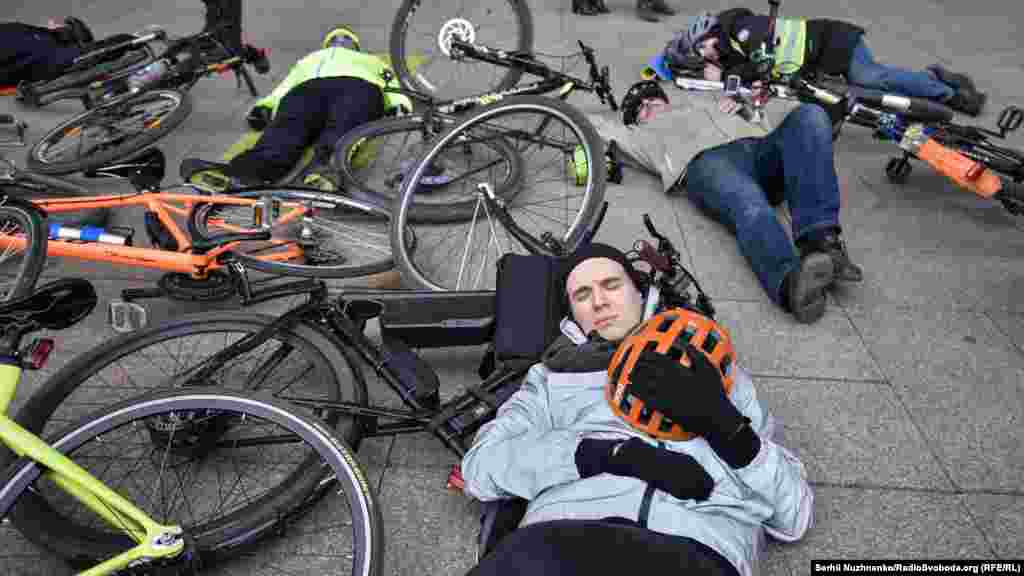«Годі нас вбивати»: «лежачий» протест велосипедистів під КМДА – фото