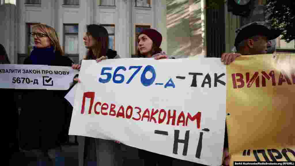 Під стінами Верховної Ради в Києві відбулися акції за ухвалення законопроекту про мову й постанову щодо телеканалів «112 Україна» та NewsOne, мітинг науковців за збільшення фінансування та зоозахисна акція.