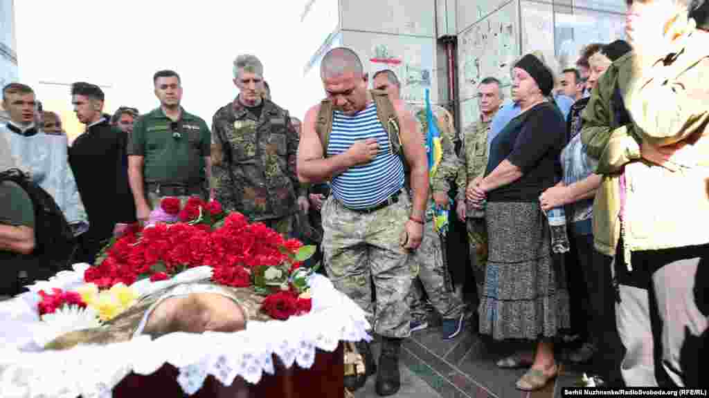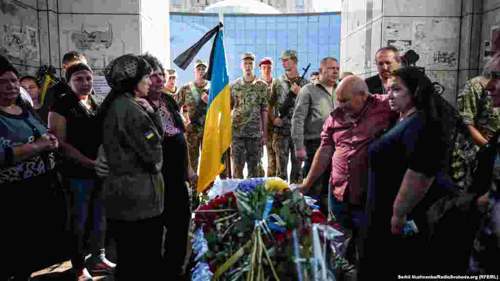 Попрощатися із загиблим військовим прийшли побратими, близькі, кияни