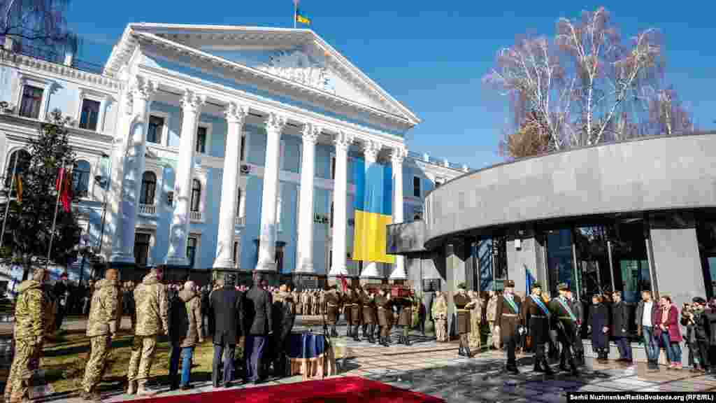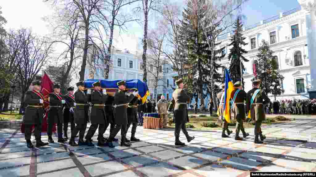У церемонії прощання взяли участь міністр оборони Олексій Резніков, головнокомандувач Збройних Сил України Валерій Залужний, а також інші представники командування ЗСУ