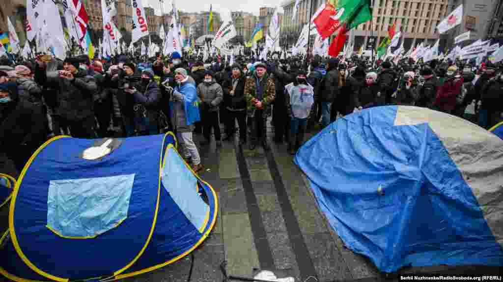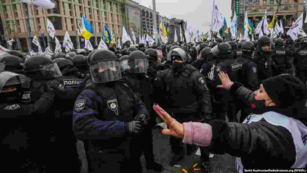 Вранці 15 грудня приватні підприємці – учасники руху #saveФОП – укотре вийшли на мітинг у центрі столиці. Розпочалася акція біля Верховної Ради, де учасники вимагали від народних депутатів розглянути і ухвалити законопроєкти щодо спрощеного оподаткування для ФОПів, а також виступали проти запровадження локдауну у січні. Згодом протестувальники пішли на вулицю Банкову до Офісу президента, де запалили фаєри, а згодом перемістилися на майдан Незалежності. Учасники протестів спробували встановити намети, а поліцейські заважали їм це робити – розпочалися сутички.