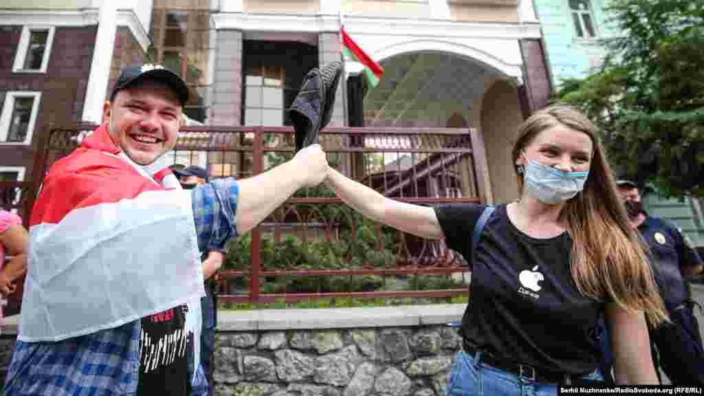 23 червня біля посольства Білорусі в Києві кілька десятків українців та білорусів, які живуть в Україні, мітингували проти політичних репресій і переслідувань у Білорусі й вимагали підтримати право білорусів на демократичні вибори.