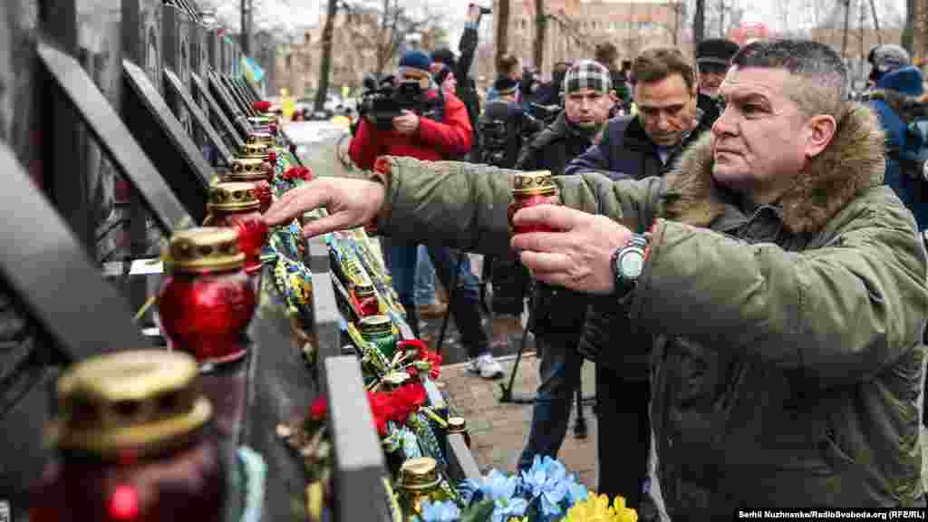 Кияни, очевидці тих подій та родичі полеглих принесли квіти та лампадки до Алеї Героїв Небесної сотні. Біля Хреста пам’яті Героїв Небесної сотні відбувся спільний поминальний молебень, присутні вшанували пам’ять загиблих під час подій 2014-го хвилиною мовчання.