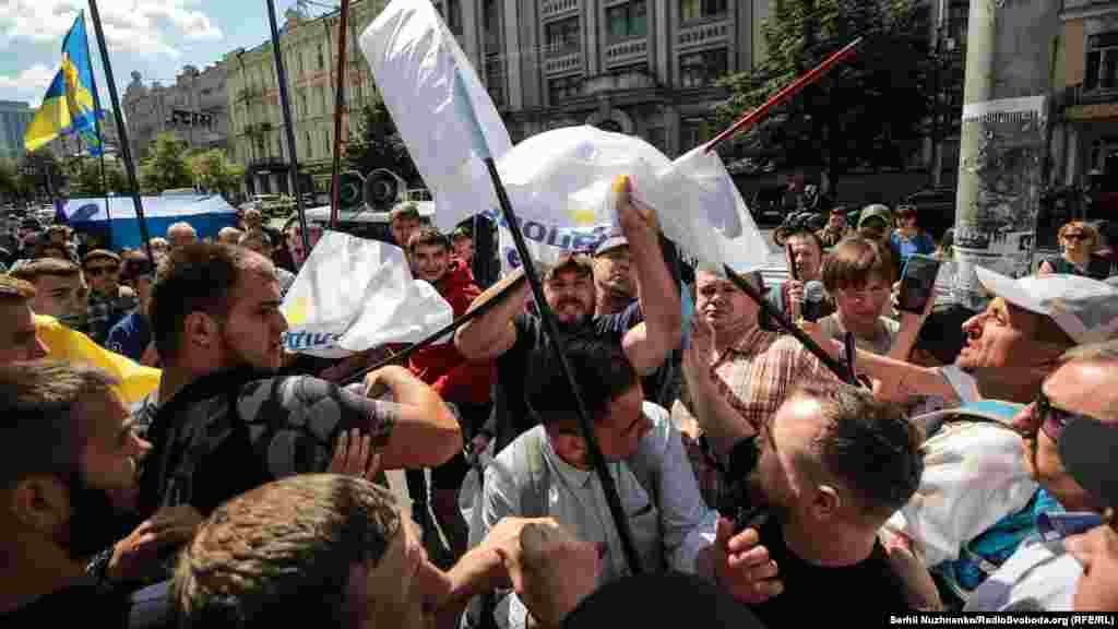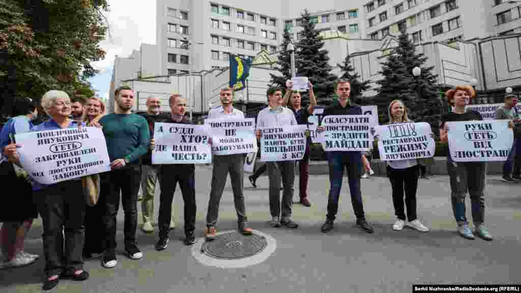 Конституційний суд України 4 липня продовжив розгляд справи щодо відповідності Конституції закону «Про очищення влади». Під стінами суду зібралися кількасот активістів і представників партій, які протестували проти можливого скасування закону про люстрацію.
