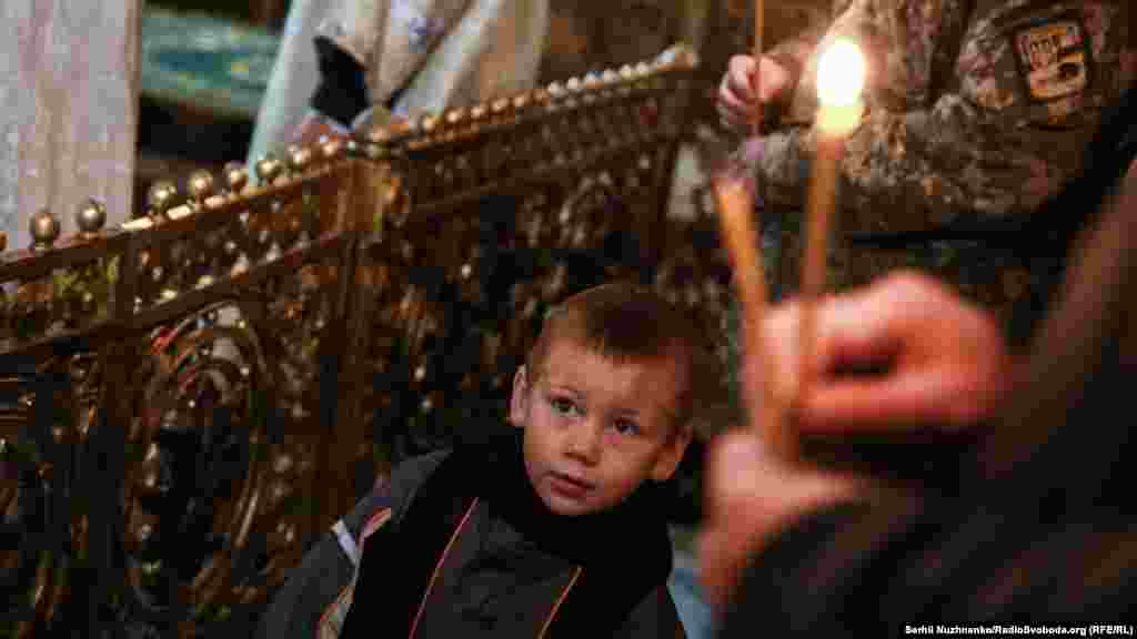У Києві у Володимирському соборі відбулася поминальна служба за загиблими оборонцями Донецького аеропорту та усіма українськими військовими, які загинули з початку військового конфлікту на сході України.