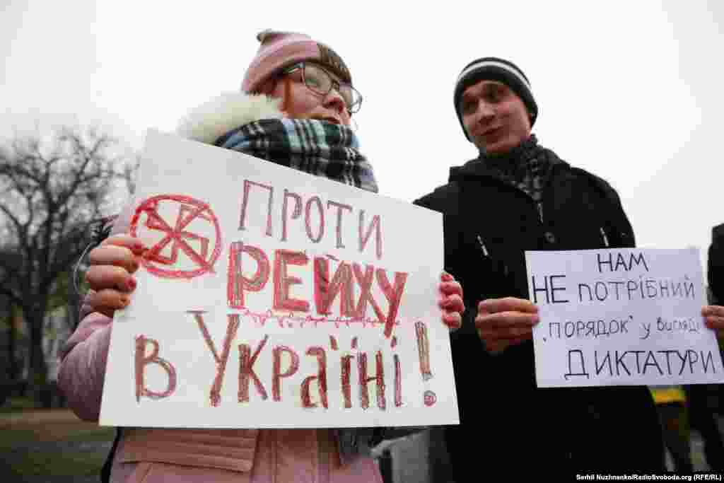 Учасники акції пройшли маршем від Контрактової площі до Поштової із гаслами «Ні насильству!», «Національній дружині – незачьот» тощо.