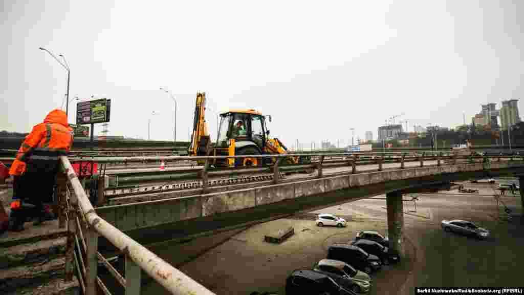 У Києві шляхопровід біля станції метро «Видубичі» планово ремонтують, загрози учасникам дорожнього руху немає. Про це у Facebook повідомив заступник голови КМДА Дмитро Давтян. Раніше очевидці повідомляли про обвал шляхопроводу на Видубичах, та розповсюдили фотографії, на яких видно дірку в мосту.