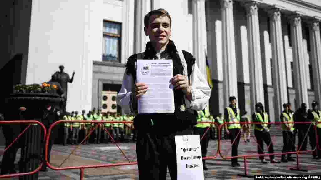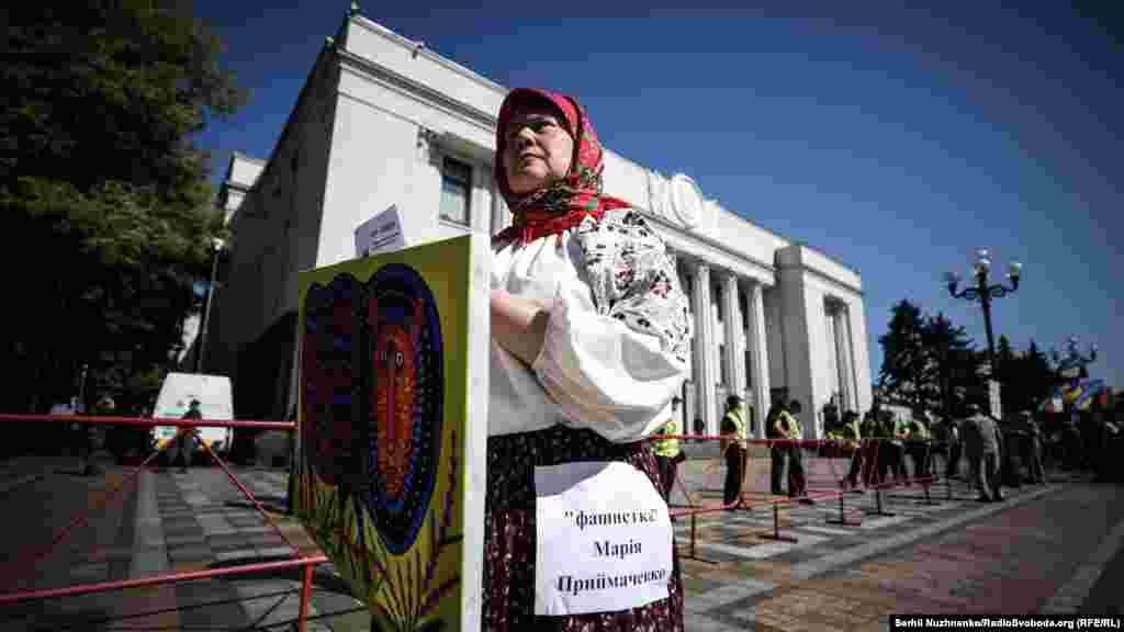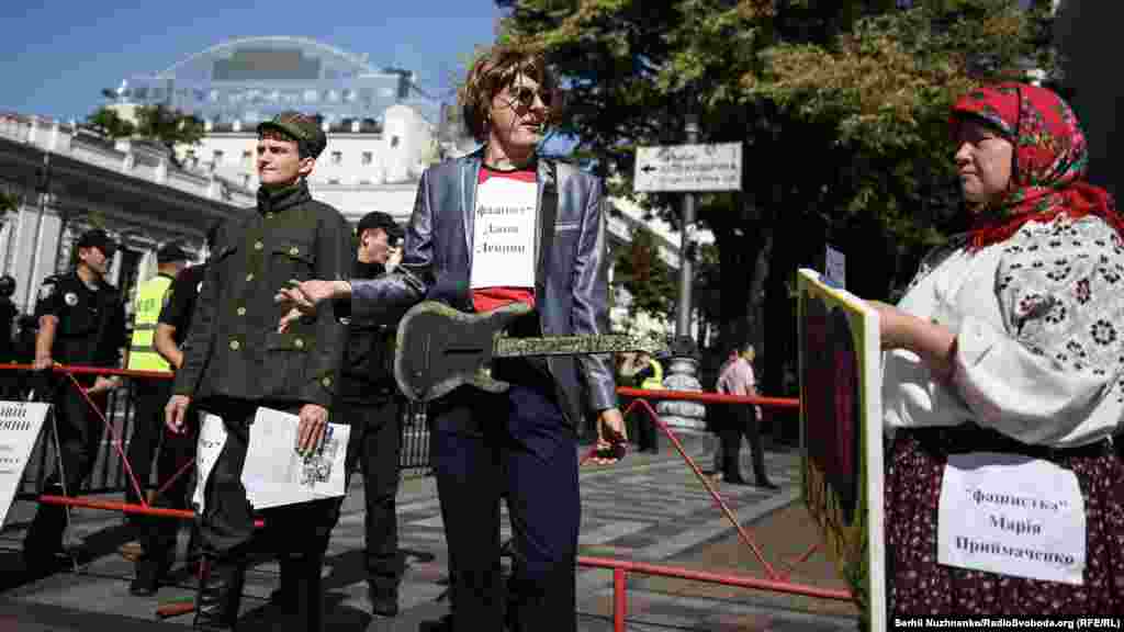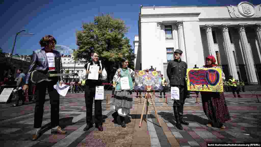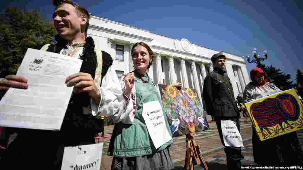 Під стінами Верховної Ради в Києві, активісти «перевдягнені» у Романа Шухевича, Катерину Білокур, Володимира Івасюка, Марію Приймаченко та Джона Леннона роздавали депутатам листівки з вимогами розглянути порушення та не продовжувати ліцензію телеканалу «Інтер». За словами активістів, такі образи обрані невипадково: «сьогодні до Верховної Ради прийшли ті, чиїми іменами в Україні називають вулиці й кого «Інтер» назвав «фашистськими злочинцями».