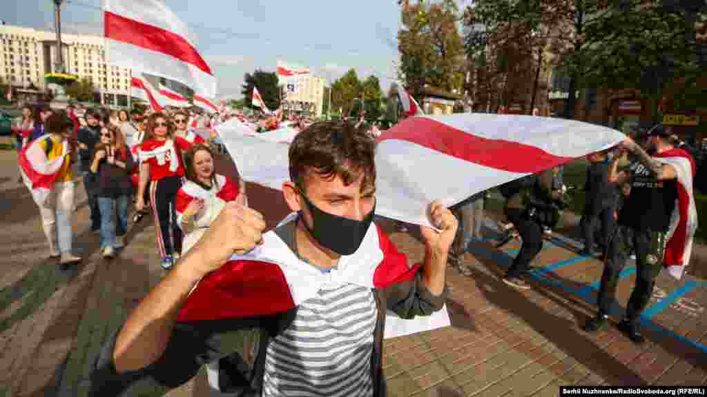 У Києві відбулася хода на підтримку протестувальників у Білорусі.