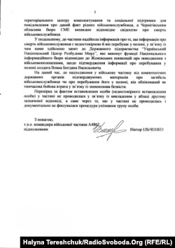 Виконуючий обов’язки командира військової частини А4862, де служив Богдан Вовк, Віктор Ільченко відповів на запит Радіо Свобода: