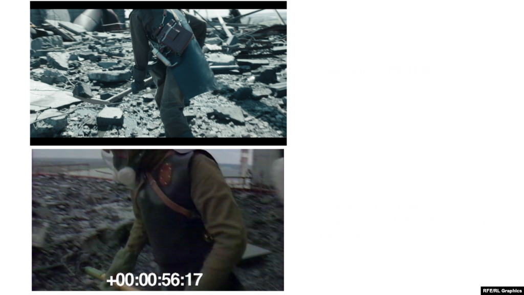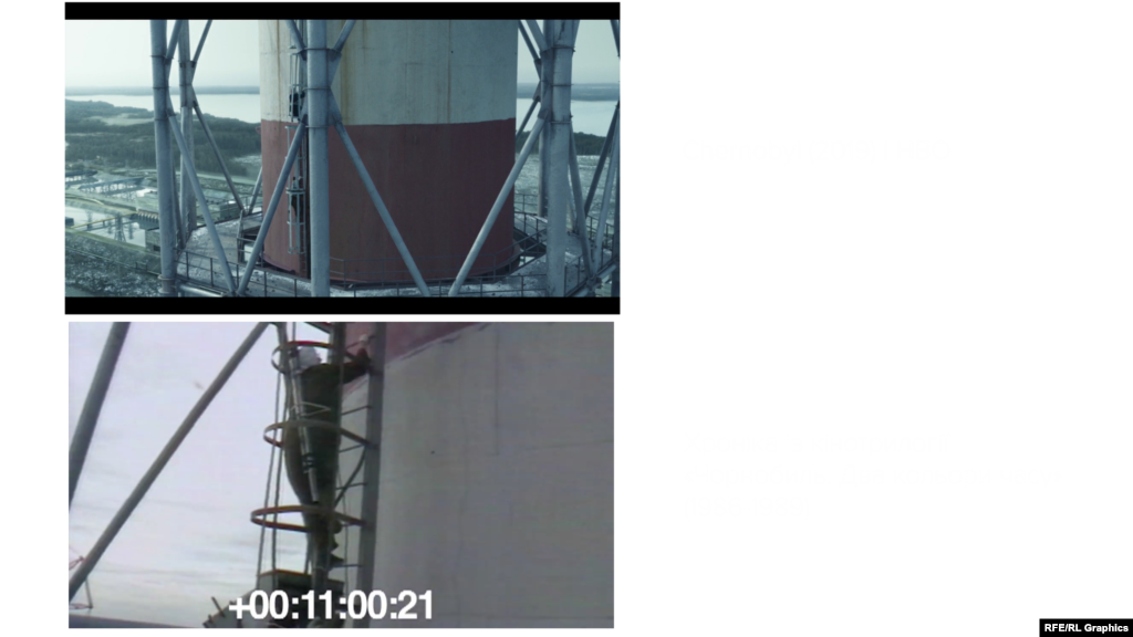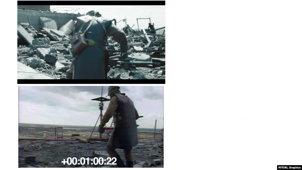 Радіо свобода порівняла планів із серілу «Чорнобиль» (2019) від HBO та кінотрилогії «Чорнобиль.Два кольори часу» (1986-1988) створеної українськими документалістами Ігорем Кобрином, Хемом Салгаником та Юрієм Бордаковим.