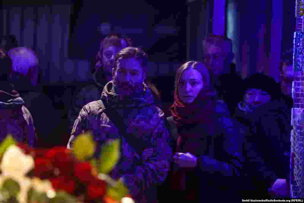 Український музикант, лідер гурту «Океан Ельзи» Святослав Вакарчук під час прощання в Театрі на Подолі