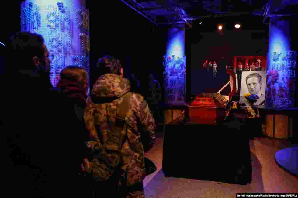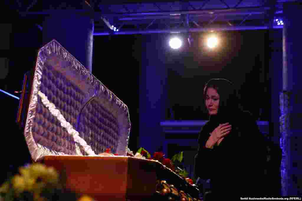 Близькі Василя Кухарського біля його домовини під час прощання в Театрі на Подолі