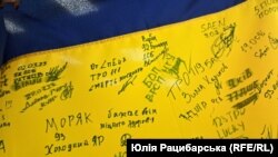 Наостанок співробітники показують нам річ, особливо цінну для персоналу, – синьо-жовтий прапор з підписами й побажаннями тих, кого вже поставили на ноги.