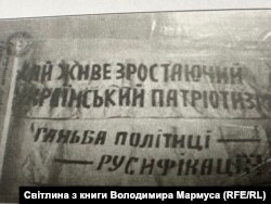 Володимир Мармус у 1963 році, а тоді йому було лише 14 років, почав вести свій щоденник, куди записував те, що чув цікавого від дорослих. Хтось скаже: «Смерть катам, смерть московській комуні!» або ж заспіває повстанську пісню – це вже у записнику. Цей зошит Володимира Мармуса радянські органи вилучили під час обшуку через 10 років.