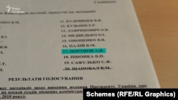 «За» були усі присутні члени Вищої ради юстиції. Серед них у протоколі, який «Схеми» розшукали, і прізвище Портнова.