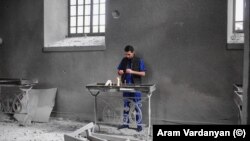 Ми побували в архиєпископа Вірменської апостольської церкви Паргева Мартиросяна за домовленістю, що ми не будемо говорити, де він перебуває. Поки ми говорили, пролунав сигнал тривоги і стало чути вибухи. Це було не дуже близько від нас, але люди забігли всередину. Потім, поки вибухали снаряди, Мартиросян тихо почав молитися.